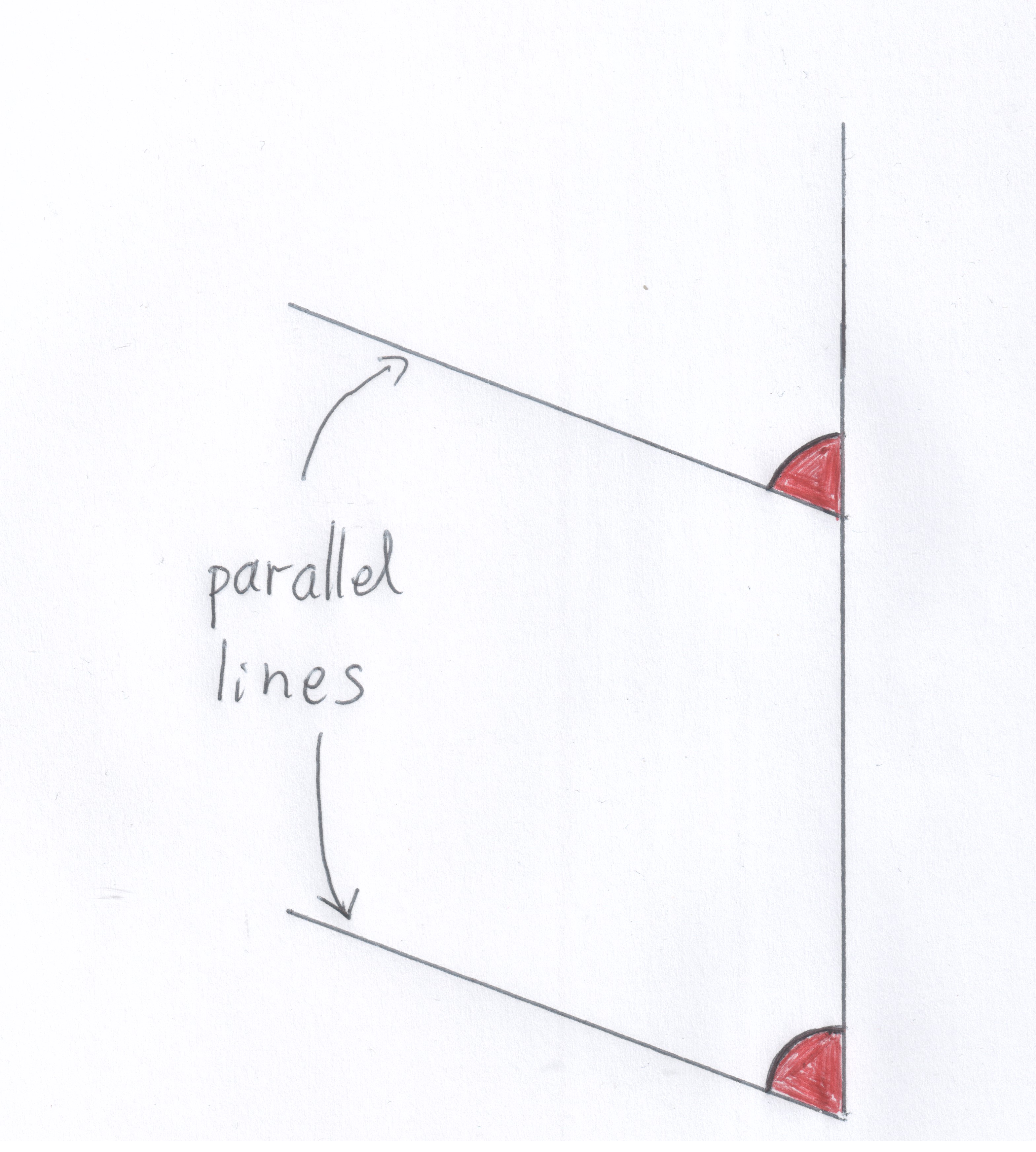 This explains why putting the ruler parallel to the bottom edge results in the ruler not being perpenndicular to the right hand edge when