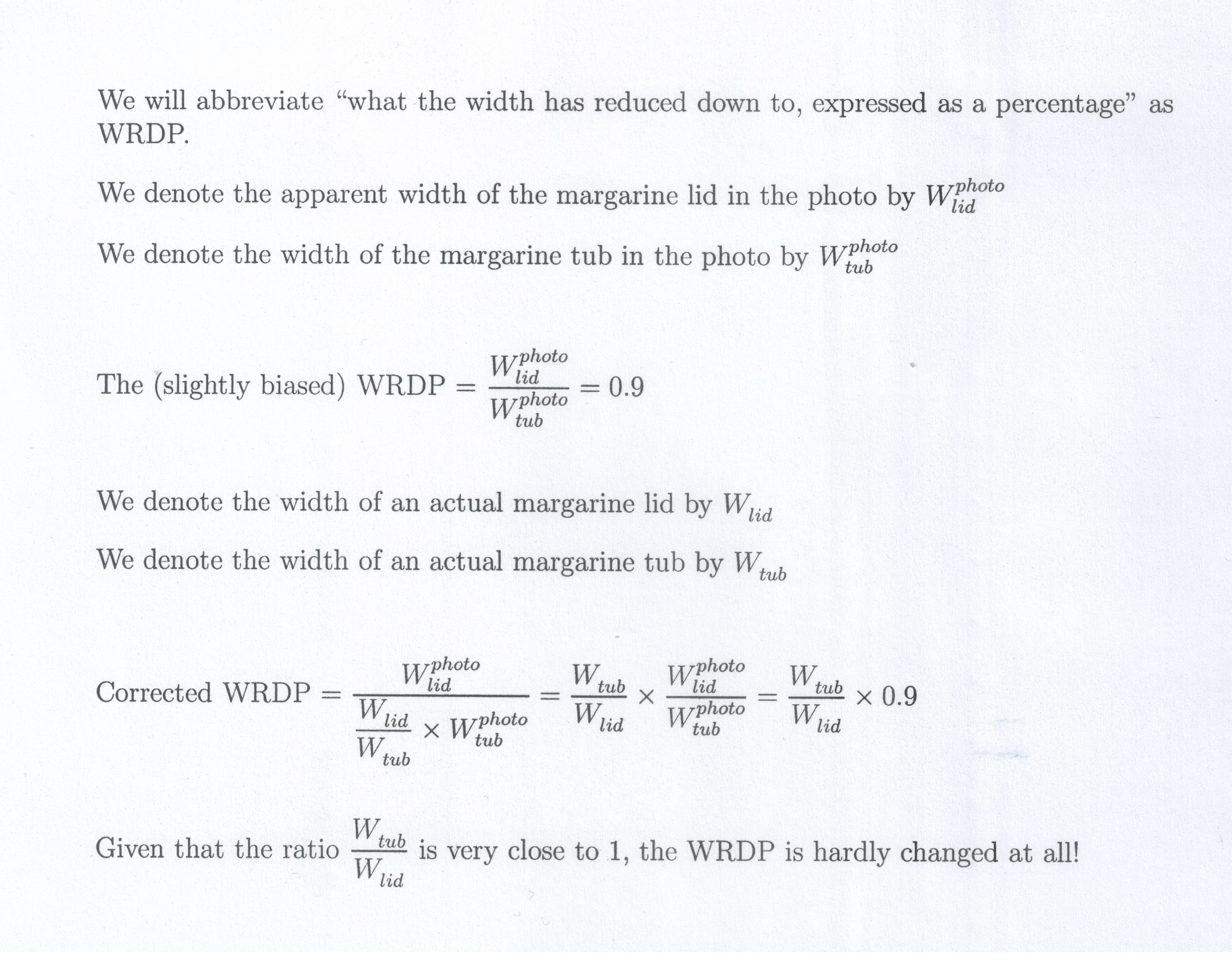 1c) Calculation to compensate for the fact that a margarine lid is very slightly bigger than a margarine tub.
